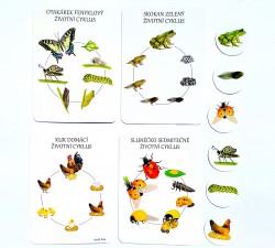 vývojové cykly - motýl, žába, slunéčko a kur